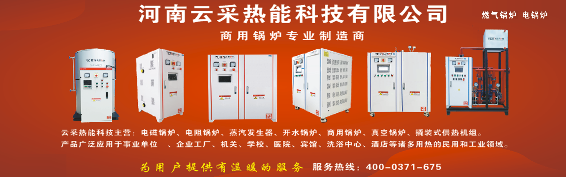 全國(guó)服務(wù)熱線:400-0371-675 歡迎來(lái)到河南云采熱能科技有限公司大卡鍋爐, 電開水鍋爐,電鍋爐,變頻電磁鍋爐,電熱水鍋爐,變頻模塊鍋爐,,蒸汽發(fā)生器 云采熱能 ,大卡鍋爐 400-0371-675官網(wǎng)!